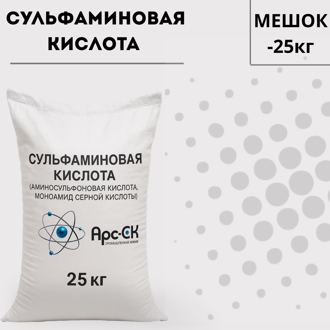 Сульфаминовая кислота (аминосульфоновая кислота, амидосерная кислота, моноамид серной кислоты) обозначается химической формулой NH2SO2OH и представляет собой органическое соединение бесцветных кристаллов, которые имеют форму ромба. Данный продукт хорошо растворяется в воде и слабо реагирует на органические растворители, не растворим в концентрированной серной кислоте. Сульфаминовая кислота хорошо реагирует с фенолами, первичными и вторичными спиртами.
